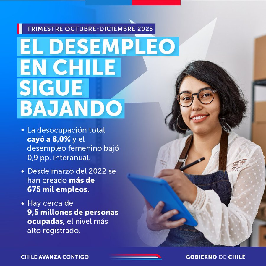 El Instituto Nacional de Estadísticas (INE) publicó este jueves los resultados de la Encuesta Nacional de Empleo (ENE) correspondientes al trimestre octubre-diciembre de 2025.