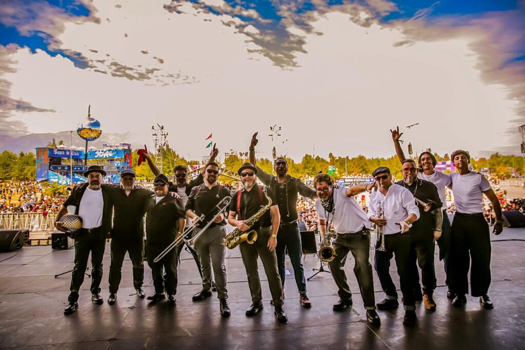Uno de los motores del espectáculo fue la comunicación y complicidad en escena entre Farah y Cristóbal González, líderes de la banda, quienes guiaron al público a través de un viaje musical marcado por la potencia de los bronces, la fuerza de las percusiones y una puesta en escena sólida y dinámica.